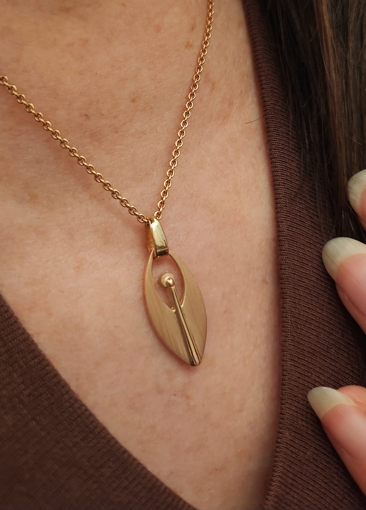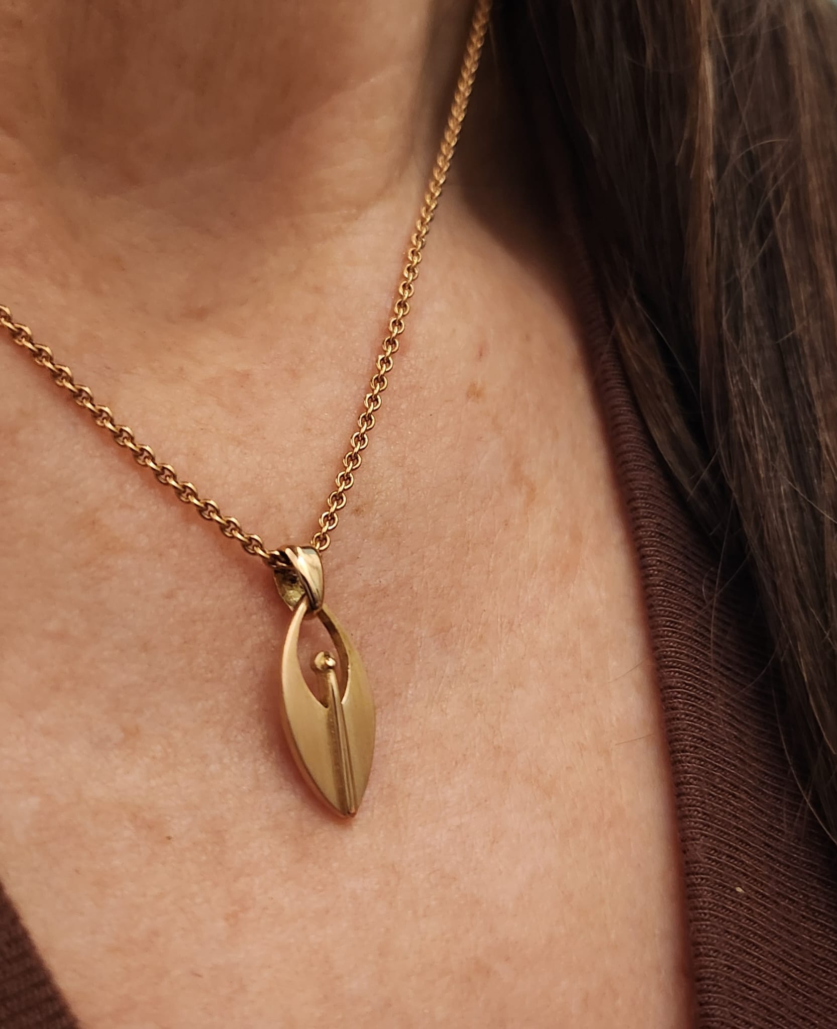 Die fein mattierten Flächen treffen auf einen polierten Körper und verleihen dem Anhänger seine zurückhaltende Eleganz – geradlinig, ehrlich und ganz ohne unnötiges Getüdel.