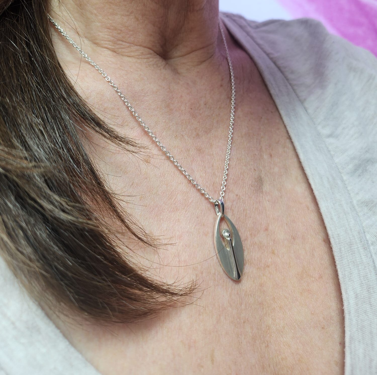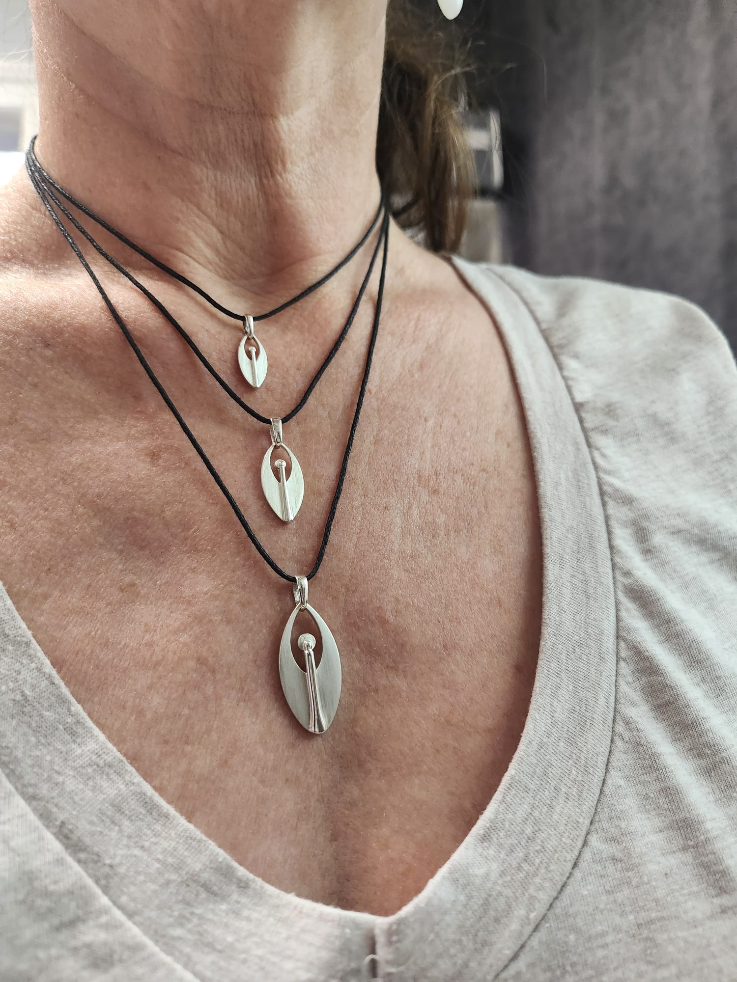 Die fein mattierten Flächen treffen auf einen polierten Körper und verleihen dem Anhänger seine zurückhaltende Eleganz – geradlinig, ehrlich und ganz ohne unnötiges Getüdel.