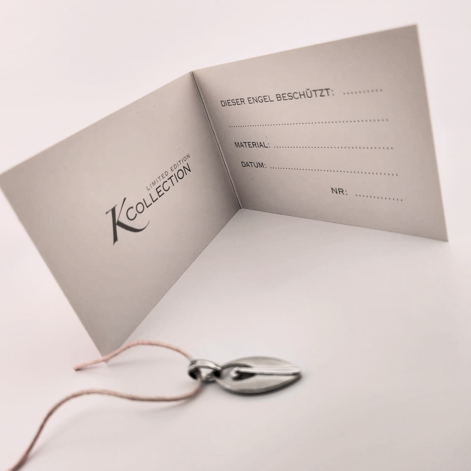Diese Nummer halten wir gemeinsam mit dem Material, dem Kaufdatum und – wenn du möchtest – dem Namen des zukünftigen Trägers in einer persönlichen Schutzengelkarte fest.